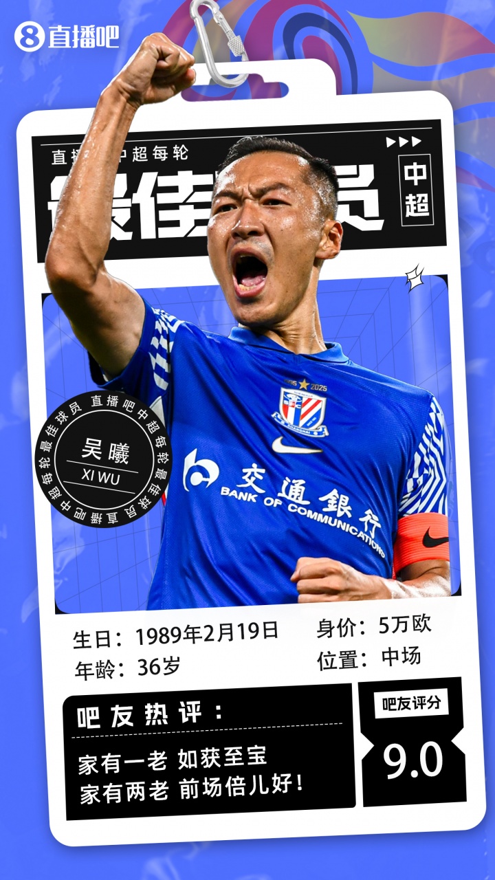 中超第26輪的MVP評選采取了綜合投票制,吧友和主播、編輯各占50%的投票比重,最終得分最高者將被評為每輪最佳球員,這種方式確保了選出的球員在各方意見中都得到了一定的認可。吳曦此次獲獎,再次印證了其在球隊中的重要性和影響力,期待他能繼續保持這樣的狀態,為申花的後續比賽貢獻更多力量。