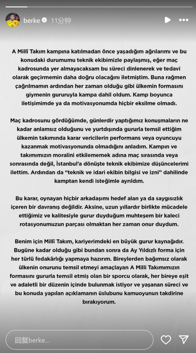 他還對那些在海外拼搏的隊友發出了微妙的諷刺,指出他們的努力、鬥誌在國家隊的決策者眼中簡直是一文不值。為了避免影響到集訓氣氛,他就選擇在回到伊斯坦布爾後,含蓄地表達了自己的“想法”,最終甚至“得到技術和管理團隊的知情同意”後,優雅地離開了集訓營。真是“高情商”的處理方式。